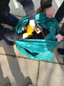 Dabei haben wir das Gelände rund um Schule, Schulweg und Spielplatz von erstaunlichen Mengen an Müll befreit (Glasflaschen, Plastikflaschen, Scherben, Plastikverpackungen usw.).