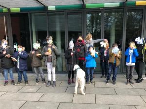 Alle Kinder trafen sich morgens (mit Abstand) auf dem Schulhof. Es gab leckere Weckmänner, einen Sankt-Martins-Rap, ein Xylophon-Vorspiel, einen Bewegungstanz und viele tolle Laternen.